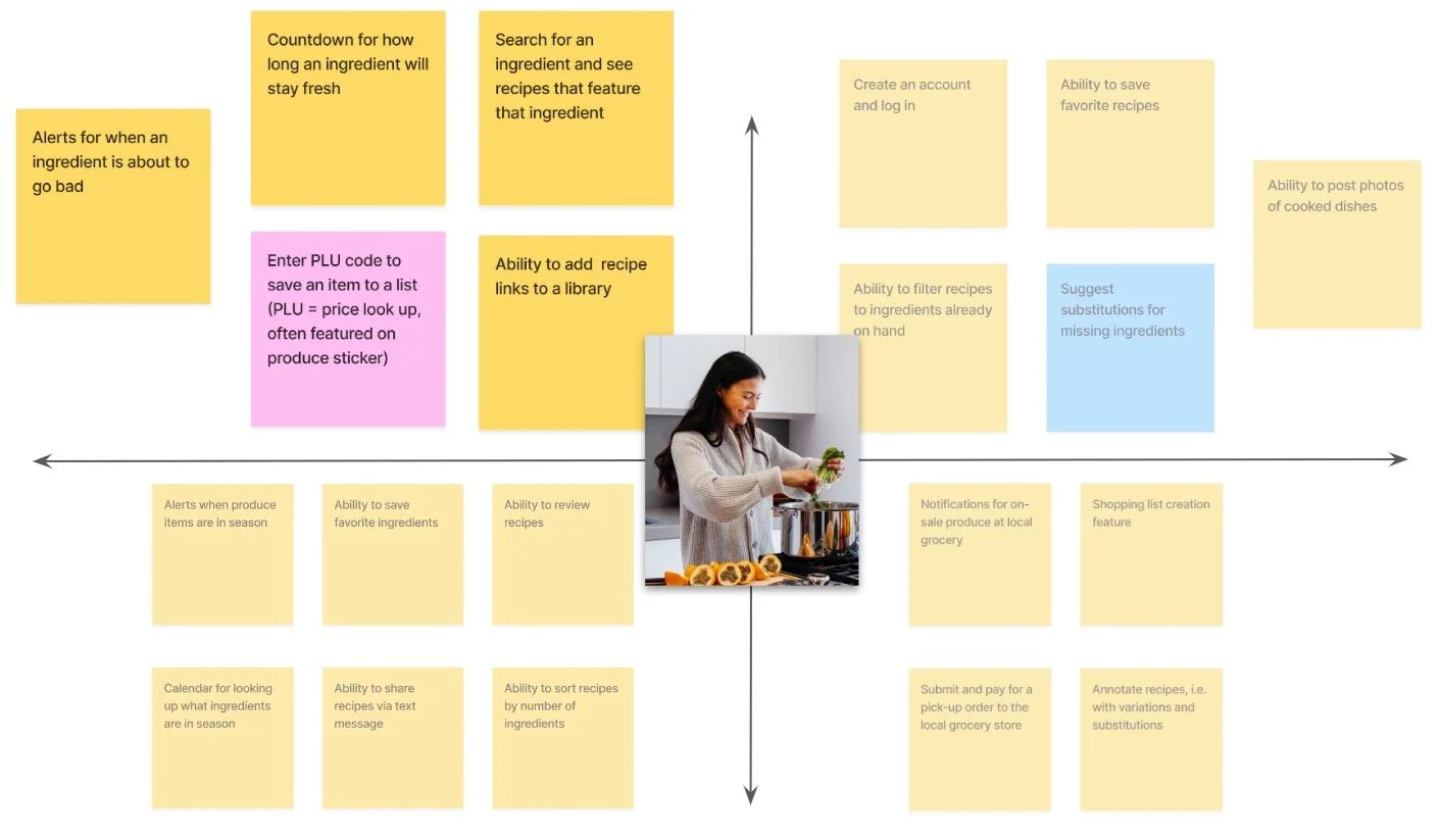 Keeping Stella at the center of it all, I brainstormed features and arranged them according to value and complexity using Figjam. The high-value, low-complexity features in the upper left quadrant became my top priorities.